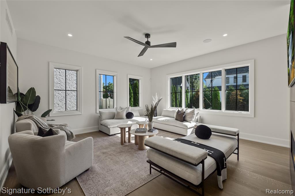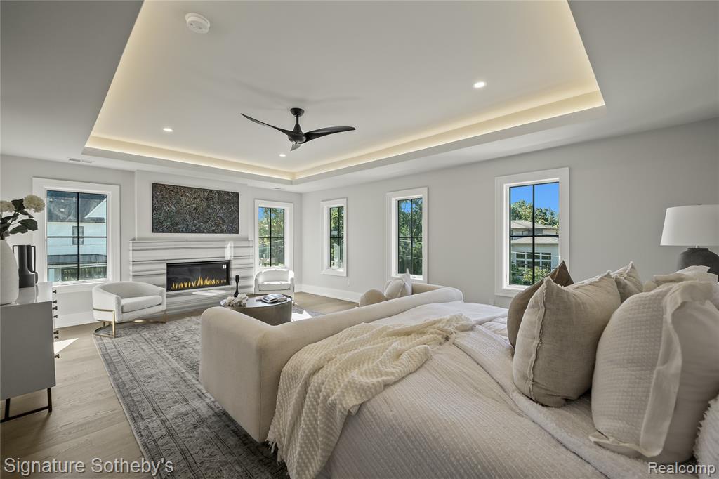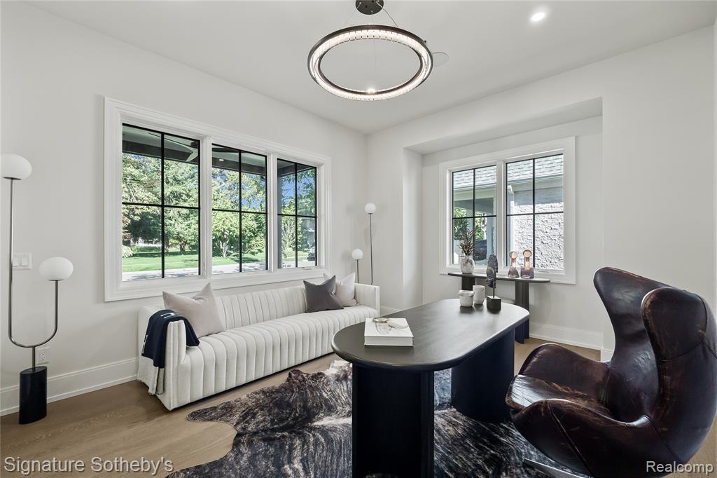 Offering 5 bedrooms, 5.2 baths, and 5,270 sq ft above grade with an addtl 2,003 sq ft of finished lower level, this Sterling Custom Homes residence combines scale with sophistication. Positioned on a .23-acre corner lot, the exterior blends stone and siding for a presence both timeless and modern. Inside, wide-plank hardwood flows through open interiors where natural light enhances layered textures and thoughtful design. Downsview cabinetry frames a chef’s kitchen appointed with Thermador appliances, integrated coffee maker, and a waterfall island topped in leathered granite. From the kitchen, a double-sided fireplace connects seamlessly to the living space, while a wet bar with waterfall counter anchors the entertaining experience. Glass sliding doors off the kitchen nook invite light and open to a landscaped yard with an aggregate patio and fire pit. A porcelain-tiled wine room complements the formal dining space, while a private office provides retreat. Upstairs, the primary suite impresses with a tray ceiling, private fireplace, expansive walk-in closet, and a spa-inspired bath featuring dual vanities, soaking tub, and steam shower. Secondary bedrooms each enjoy their own en-suite bath, creating comfort and privacy throughout. A spacious loft adds flexibility, ideal as a second office, study space, or play area. The finished lower level continues the lifestyle with hardwood flooring, a full bar, guest suite, additional bath, and a flex room ready for fitness or a golf simulator. Everyday convenience is elevated through Control4 automation, security cameras, and a heated two-car garage with epoxy flooring. A residence crafted with precision, balancing architectural presence with functional ease, designed for both grand entertaining and comfortable daily living. (Please note that the pool and modified exterior paint are not included in the base price and may be added as optional features.) |