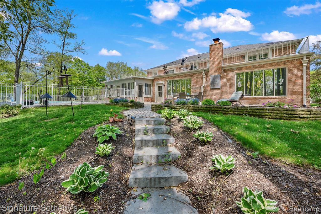 Experience elevated riverfront living in this custom-built Georgian estate situated on nearly an acre backing to the Clinton River. Enjoy the resort-style grounds with a refinished, heated in-ground swimming pool surrounded by nature providing ultimate privacy. Inviting grand foyer with sweeping staircase flows into the seamless layout; sunlit executive office, formal living/dining rooms & extraordinary great room with natural fireplace. The gourmet kitchen offers a large granite island, premium appliances & beautiful views of the property. Four bedrooms upstairs, including a luxurious primary suite with rooftop terrace and a newly renovated spa bath. Finished basement with kitchenette, great for entertaining. Conveniently located near plenty of shopping/dining options, parks & highway access. Recent updates include: kitchen remodel, interior/exterior paint, refinished gunite pool with new pavers, 2 new furnaces & AC units, whole-house generator, additional landscaping including mature trees, appliances & plantation shutters ($275k+). |